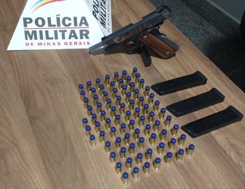 Durante a diligência, a guarnição acompanhou a mulher até a residência, onde encontrou uma pistola Taurus, modelo PT 1911, calibre .45, carregada com oito munições, além de 72 munições avulsas.