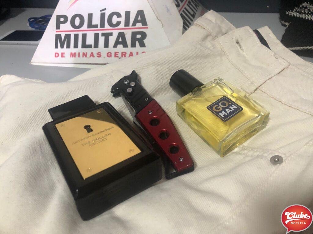 A Polícia Militar prendeu um rapaz, de 18 anos, e um adolescente, de 17 anos, por suspeita de furto em duas lojas no Centro de Patos de Minas. A prisão aconteceu na tarde desta quarta-feira (10/01) na Rua Padre Caldeira. O adolescente estava armado com um canivete no momento da prisão.