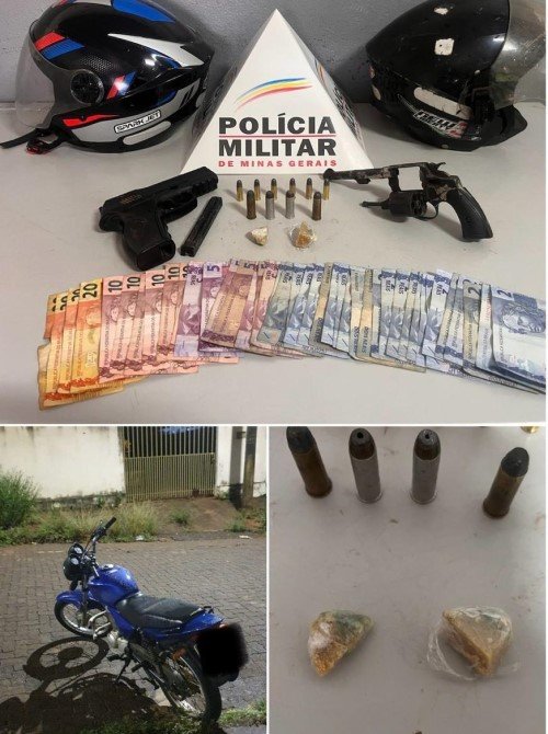 Na madrugada desta quinta-feira (08/01), a Polícia Militar realizou uma ação que resultou na prisão de dois autores e na apreensão de uma motocicleta furtada, além de arma de fogo, munições e substâncias entorpecentes, no bairro Nossa Senhora das Graças, em Patos de Minas.