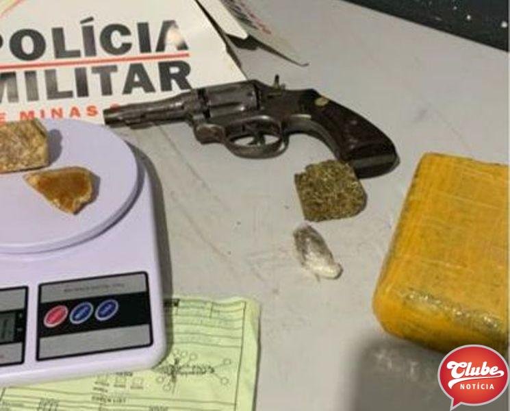 De imediato, foi procedida abordagem policial e o indivíduo foi identificado e constatado haver em seu desfavor um mandado de prisão. Questionado sobre envolvimento com tráfico de drogas e outros ilícitos, o suspeito confessou ter no seu quarto, uma barra grande de maconha. Já na residência do suspeito, foi localizado sobre a cama a referida droga. Ainda no local, foi localizado sob o colchão, um revólver calibre .38.
