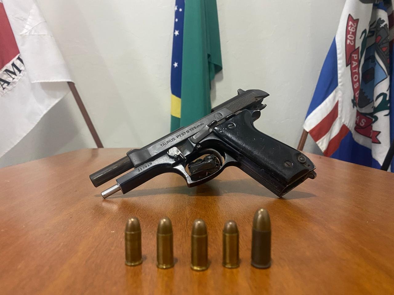 Durante as diligências, foi localizada uma pistola Taurus PT 57S calibre 7,65 escondida sob o colchão do quarto, carregada com quatro munições calibre .32. Além disso, foi apreendida uma munição calibre 9mm, de uso restrito.