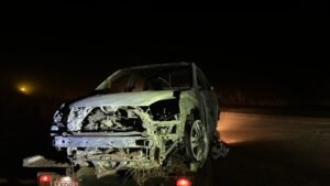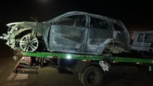 Posteriormente, equipes localizaram, incendiado, um veículo Honda CR-V com placa adulterada em uma plantação próxima ao local da interceptação. O automóvel, que possivelmente havia sido furtado dias antes em Patrocínio, teve as chamas controladas pelo Corpo de Bombeiros e foi removido ao pátio credenciado.