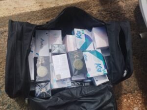 Durante a revista ao veículo, foram apreendidos três barras de substância esverdeada semelhante à maconha, uma faca, um aparelho celular, uma munição intacta e diversos materiais utilizados para a preparação e comercialização de drogas.