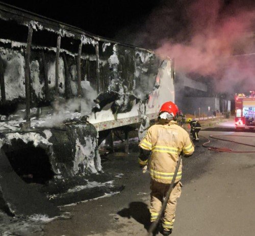 Bombeiros controlam incêndio em carreta abandonada no bairro Planalto em Patos de Minas
