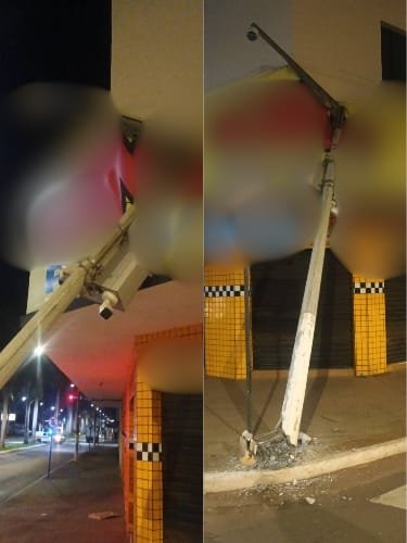 Caminhão colide com poste após motorista perseguir suspeito de furto em Patos de Minas