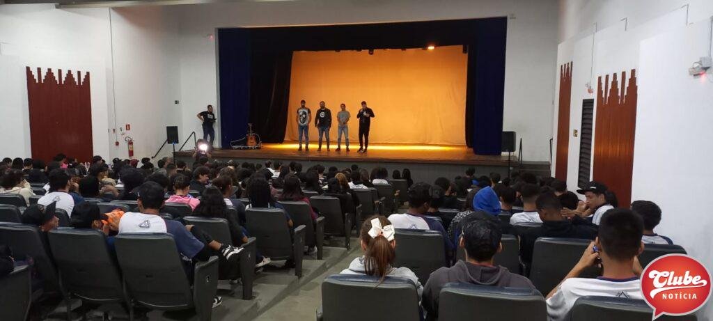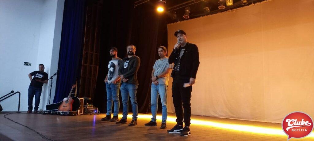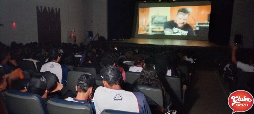 Na manhã desta terça-feira (25), mais de 200 alunos da Escola Estadual Marcolino de Barros se reuniram no teatro municipal, Leão de Formosa, para assistir a pré-estreia do filme ”Patos, o Rock Que Nos Trouxe.” O filme foi produzido com recursos da Lei Paulo Gustavo e teve a sua estreia oficial no canal do youtube da banda Dino Patense.