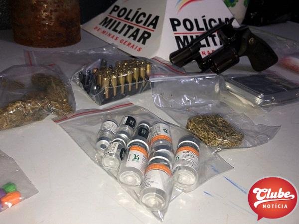 A Polícia Militar prendeu um jovem de 24 anos por suspeita de tráfico de drogas. A prisão aconteceu na noite desta sexta-feira (22/01) na Avenida Marabá, no Bairro Alto do Limoeiro em Patos de Minas. Além de drogas, armas e munições, os militares também apreenderam oito frascos da vacina da COVID-19 vazios.