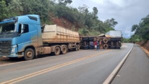Um acidente foi registrado na madrugada desta quarta-feira (1º) na BR-365, no km 377, pouco à frente de Varjão de Minas. A ocorrência envolveu uma carreta carregada com sacos de cimento e um caminhão de transporte de móveis.