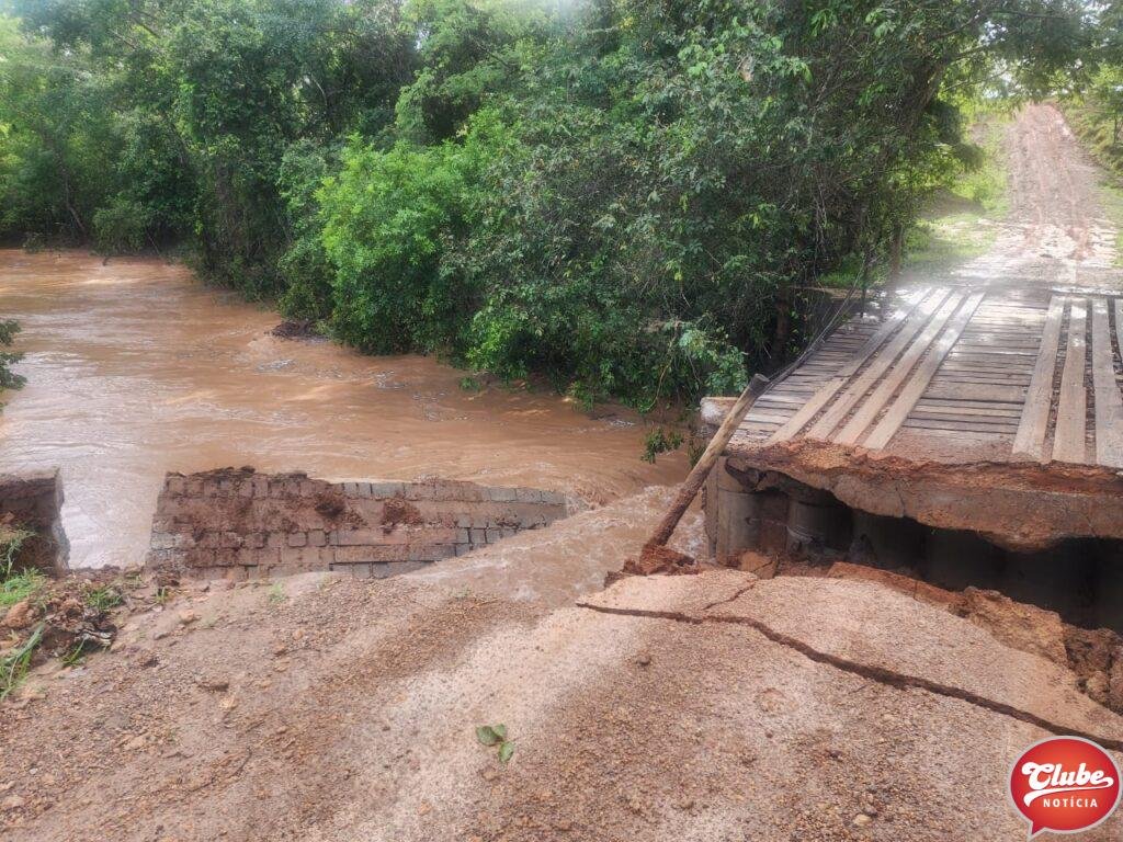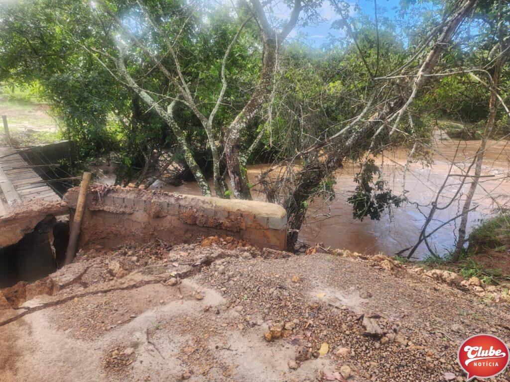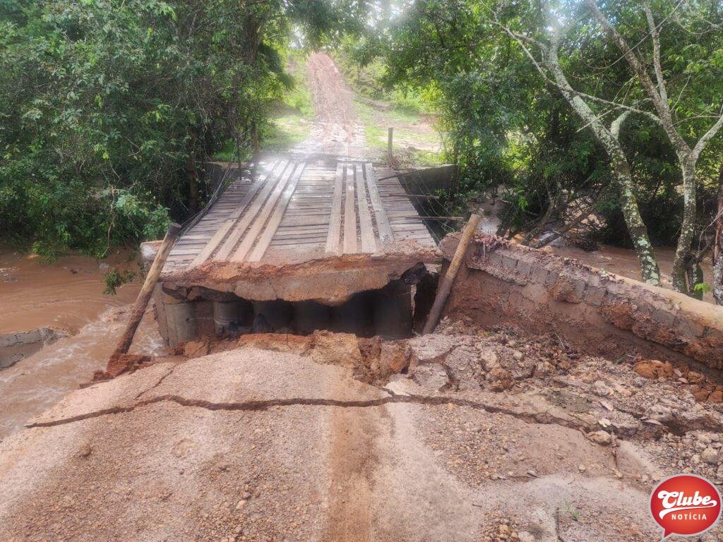 Recuperada em maio de 2023 a Ponte do Córrego de Tapera não resistiu ao grande volume de chuvas causando comprometimento a sua estrutura.