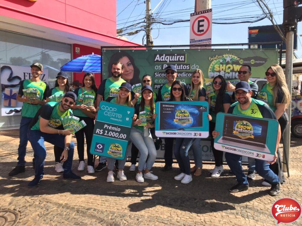 Uma manhã de sábado repleta de alegria e brindes no coração de Patos de Minas. Assim o Sicoob Credicopa promoveu mais uma edição da entrega dos prêmios da promoção Trintou. Motoristas e pedestres que passavam pela principal rua da cidade, a Major Gote, deram uma paradinha para prestigiar a promoção. Foram distribuídos brindes diversos e é claro muita alegria com a presença de colaboradores e da equipe de promoções do Sistema Clube de Comunicação comandada pelo apresentador Mário Júlio transmitindo tudo ao vivo pela FM Liberdade 101,1.