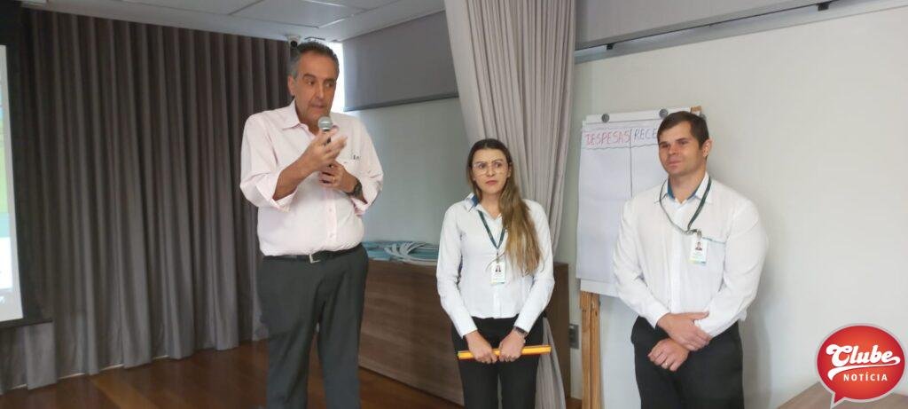 Além das palestras educativas financeiras realizadas no auditório da cooperativa, as crianças receberam um cofrinho personalizado, simbolizando a importância do ato de poupar.