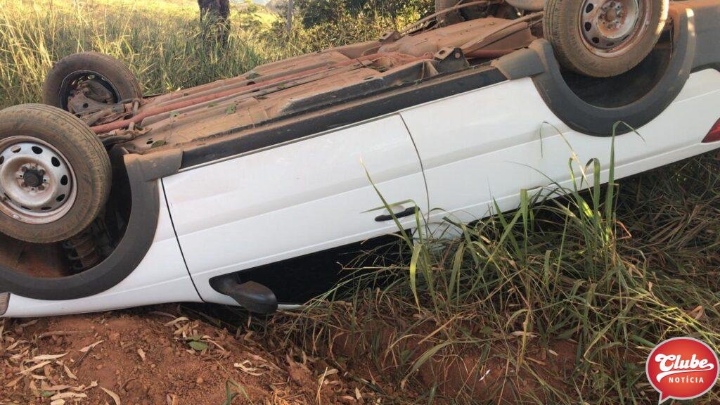 No local, os militares encontraram um veículo Fiat Strada branco capotado, com as quatro rodas para cima, próximo à via.