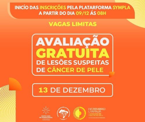 Dezembro Laranja: Avaliações dermatológicas serão realizadas na Santa Casa de Misericórdia, no próximo sábado (13/12)