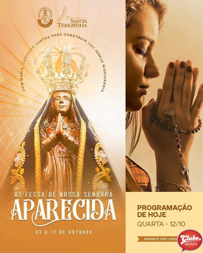 As 18 horas uma missa campal será realizada na Praça do Cristavo com consagração, procissão luminosa e coroação de Nossa Senhora Aparecida. Logo em seguida também haverá movimentação de barraquinhas.