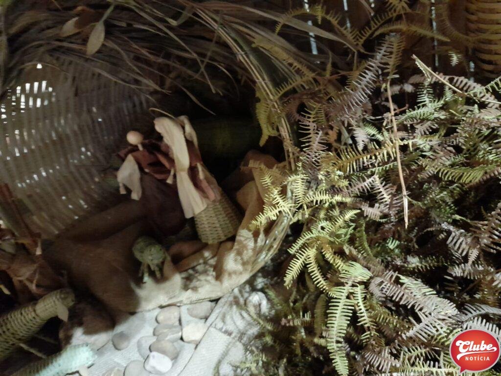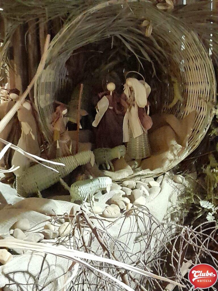 “Desde a gruta que é um balaio de tamanho bem grande, nós fomos colocando todos os personagens usando balaios de bambu, eu quis envolver o senhor Tião dos Balaios para expressar o valor que o trabalho dele tem […] e com isso nós conseguimos fazer um trabalho muito diferenciado. Lá é um cantinho onde o Adão criou uma estrebaria e eu fiz as vestimentas dos personagens”, explicou a artesã.
