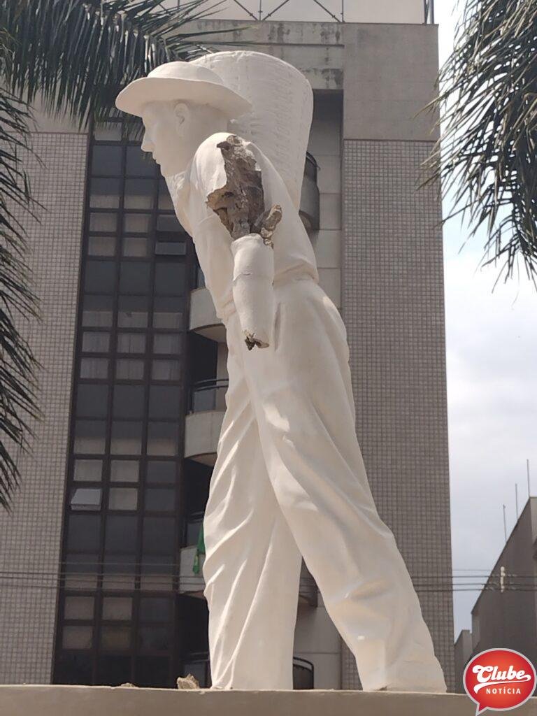 Mais uma vez o tradicional monumento, conhecido como “Homem do Balaio”, localizado na avenida Getúlio Vargas foi alvo de vândalos.