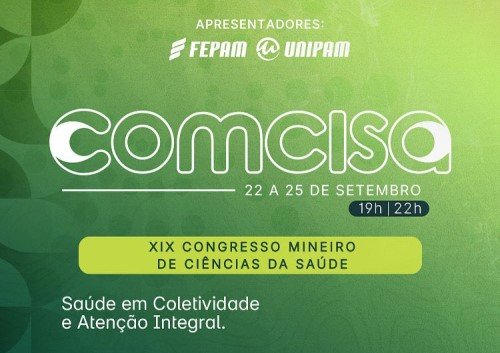 Será realizado na próxima semana, de 22 a 25 de setembro, o Congresso Mineiro de Ciências da Saúde (COMCISA). O evento é promovido pelos cursos de Enfermagem, de Educação Física, de Farmácia, de Fisioterapia, de Fonoaudiologia, de Nutrição, de Odontologia e de Psicologia.