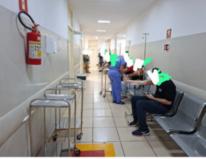- Pacientes recebendo medicação no corredor, evidenciando falta de estrutura ou espaço adequado;