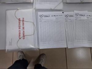 - Máquina de biometria quebrada, obrigando o uso de ponto em papel, que ainda apresentava falhas de preenchimento;
