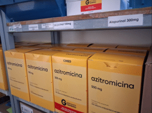 - Medicamentos armazenados encostados diretamente nas paredes, situação que pode comprometer conservação e controle.