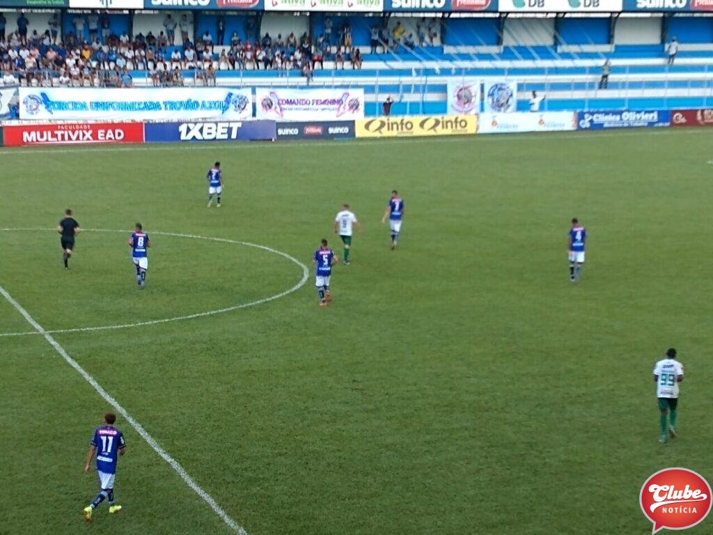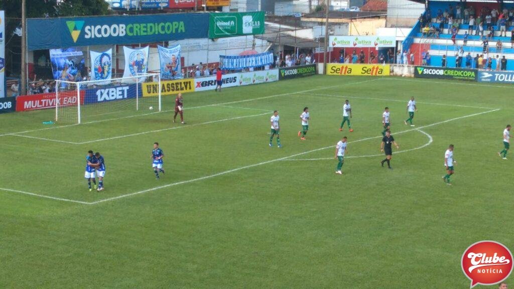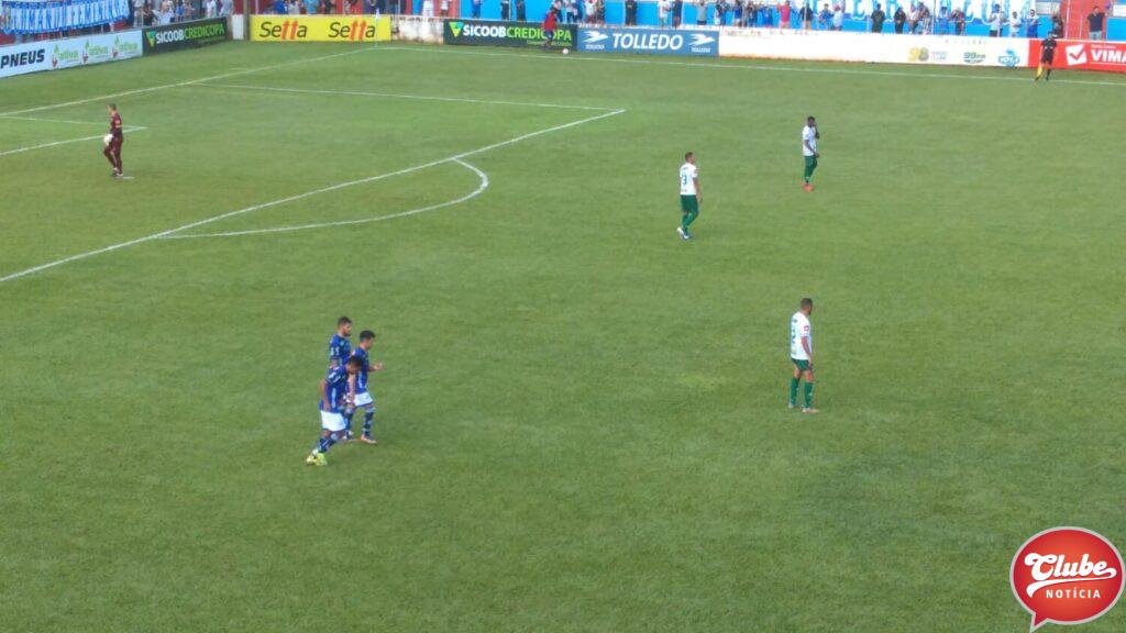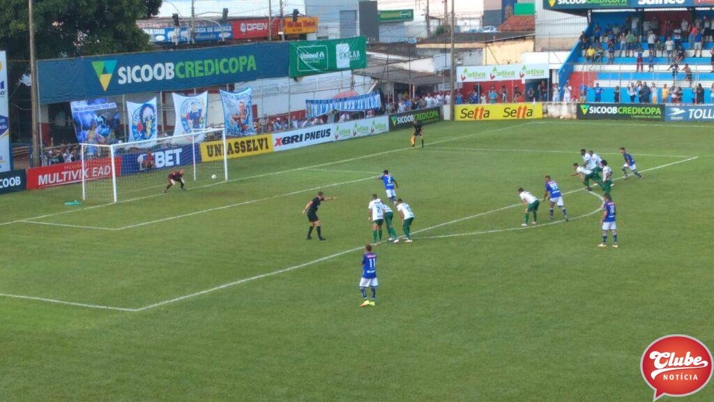 O Trovão Azul abriu o marcador nos acréscimos do primeiro tempo, aos 46 minutos, de pênalti. O atacante Matheus Oliveira foi derrubado na área, penalidade máxima indiscutível. O lateral-direito Nininho cobrou e mandou prá rede, com o goleiro Roballo conseguindo tocar na bola, mas não conseguindo interceptar.