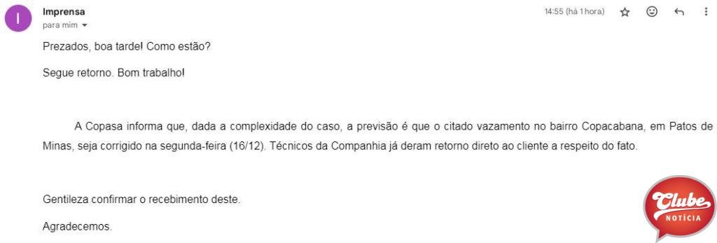 A Reportagem da Rádio Clube98 entrou em contato com a Prefeitura de Patos de Minas e com a Copasa que se manifestaram nas seguintes notas: