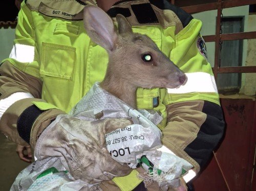 De acordo com o Corpo de Bombeiros Militar de Minas Gerais (CBMMG), a equipe foi acionada pelo número de emergência 193 após moradores informarem que o animal estava em risco e necessitava de resgate. Ao chegarem ao local, os bombeiros constataram que o veado estava ferido e com dificuldade de locomoção.
