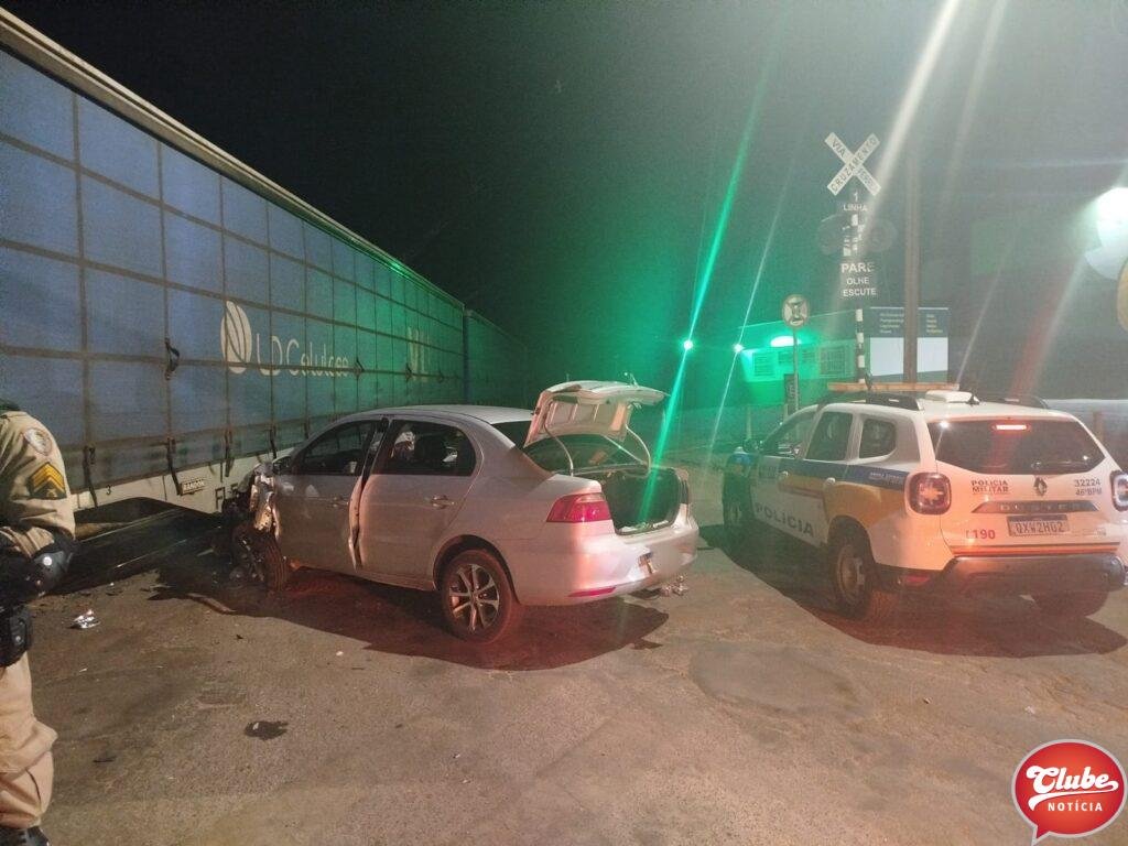 Na noite desde sábado (22), por volta das 21h32, a Polícia Militar foi acionada para atender a um acidente de trânsito envolvendo um carro e uma locomotiva na Avenida Faria Pereira, em Patrocínio.