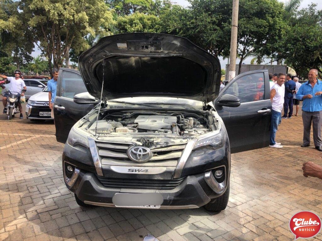 Dois moradores em situação de rua atearam fogo num Toyota/Hilux SW4 no estacionamento do Galpão do Produtor, no Bairro Lagoa Grande em Patos de Minas. O crime aconteceu na manhã deste sábado (27/01). Eles foram capturados pela equipe de segurança da Feira do Produtor e presos pela Polícia Militar.